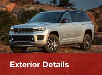 Regardless of your choice of seats, the Grand Cherokee is a massive SUV. as the name suggests. Its exterior design is in no way brutish, though; the sleek lines and sharp looks make it a great vehicle for every situation. There's a considerable range of wheel sizes available, including 21" wheels made of polished aluminum. All trims come with fog lamps and LED head and tail lamps.